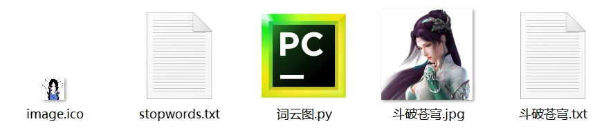 其中,stopwords.txt为停用词数据,直接网上搜索即可,斗破苍穹.txt为该小说所有章节内容,也是直接网上搜索或者自行编写爬虫程序进行爬取即可。